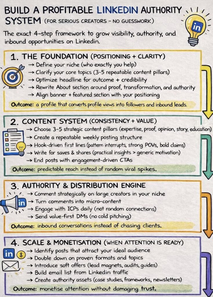 The exact 4-step framework to grow visibility, authority, and inbound opportunities on LinkedIn.