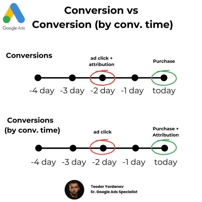 I had an account that showed an ROAS of 6 based on Conv. time; when I used the normal conversion value, it was an ROAS of 2.