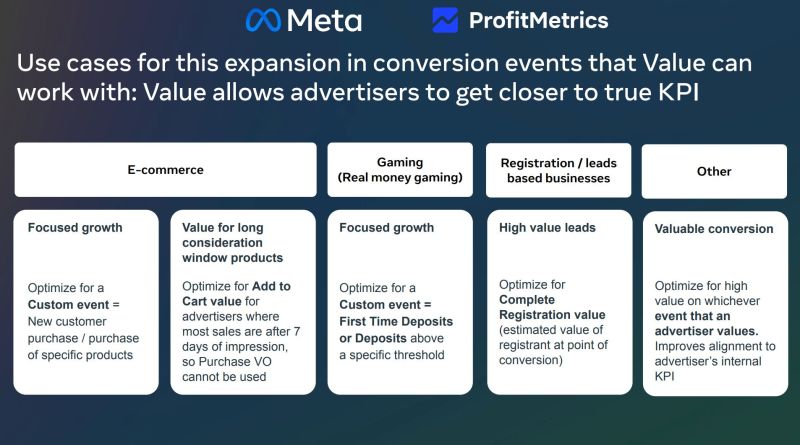 A second major update from Meta is the expansion of value-based bidding beyond purchase events.