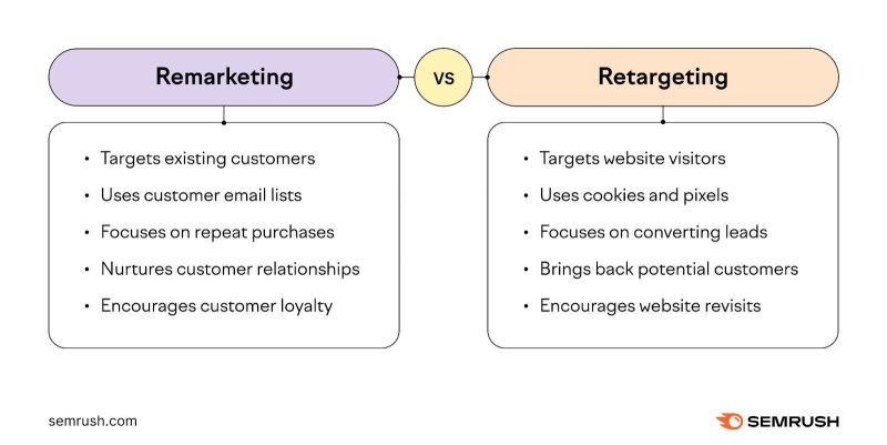 Know the difference between remarketing and retargeting. Powered by Semrush.